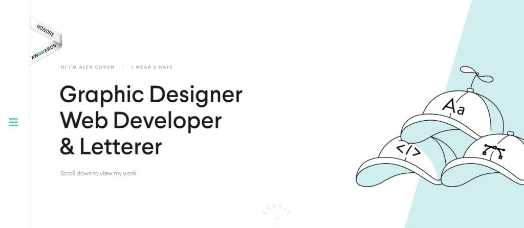 As he puts it on the home page of his website, Chicago-based Alex Coven wears three hats – he’s a Graphic Designer, a Web Developer, and a Letterer. Straight from the word go, Coven tells you exactly what he does. His website is all about clarity and simplicity.His design is simple yet effective – just scroll down, and you’ll see his work. Coven overlays each project with a different colour, which makes the website both user-friendly and impactful. You may also notice how he uses the full-width of the screen, making the website all about his work, with no distractions around it. And if you want to find out more about each project, a handy arrow on the right-hand side of each section points you into the right direction.